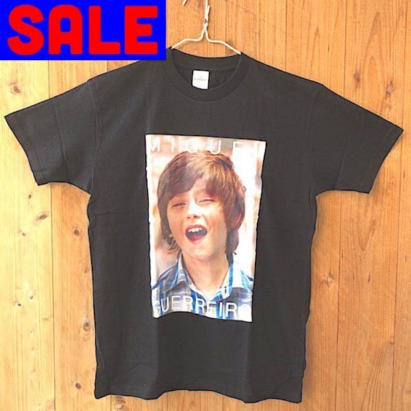 本Tシャツは、あのインパクト抜群のCMで美声を披露していたミゲル少年のプリントしたという怪作(ほめ言葉)。胸部と腹部を覆うプリント部分は、ラバープリントです。