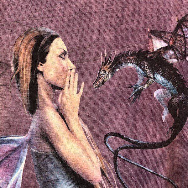 店主的には、「THE MOUNTAIN」のファンタジー系統のTシャツは激プッシュなのですが、このTシャツは全体から濃度高めの暗黒エナジーが噴出しているため、正直ウケがいいとは思えません。しかし、ニッチを追求してこその当店ですから、自信を持ってこちらをおすすめしたいと思っています。