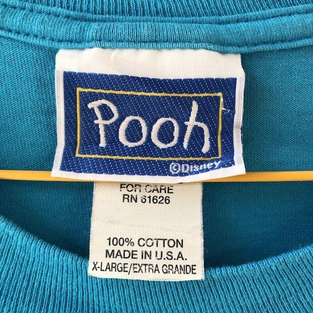 BRAZOS Sports wearのタフなつくりのボディで、Made in USAです。ビンテージ市場でも人気のプーさんで、フロントに大きくプリントされているのは、特にコレクターも求めています。
